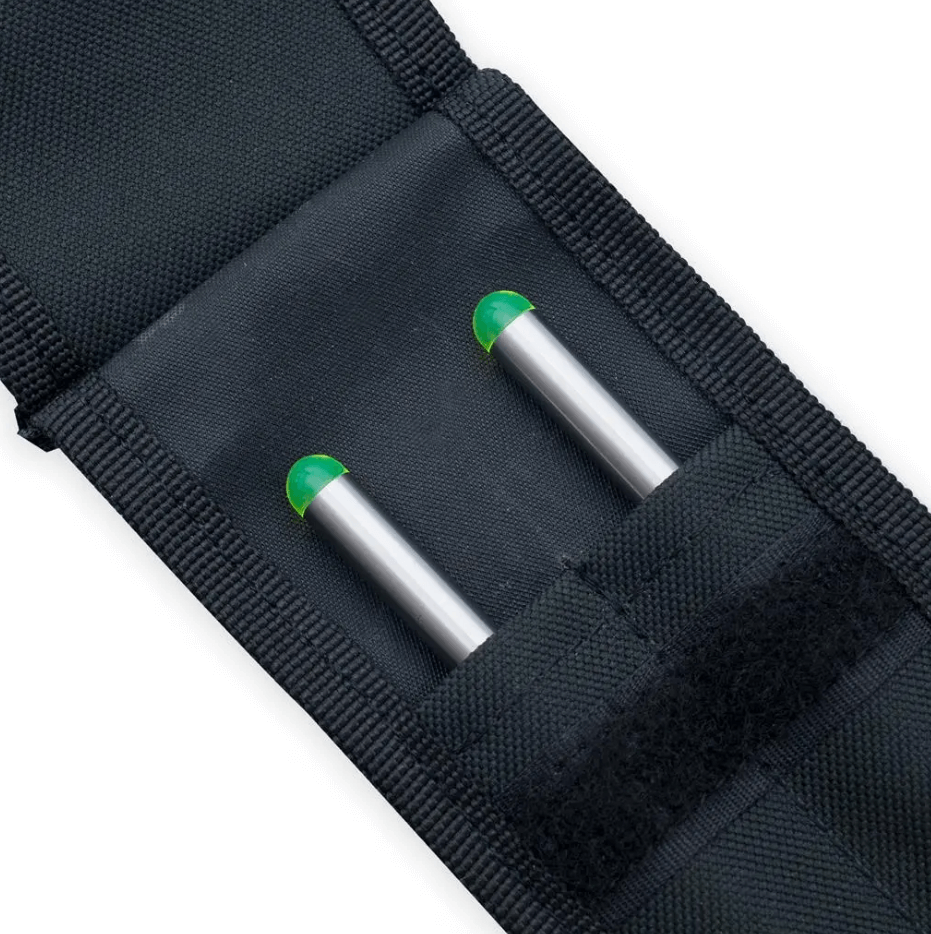 Picas longe da marca ESP modelo Becos de embrulho, especial para pesca com pesca de carpa. Conjunto de dois palitos de aço inoxidável e três marcadores de inclinação embalados com muito cuidado em uma tampa de tecido resistente.