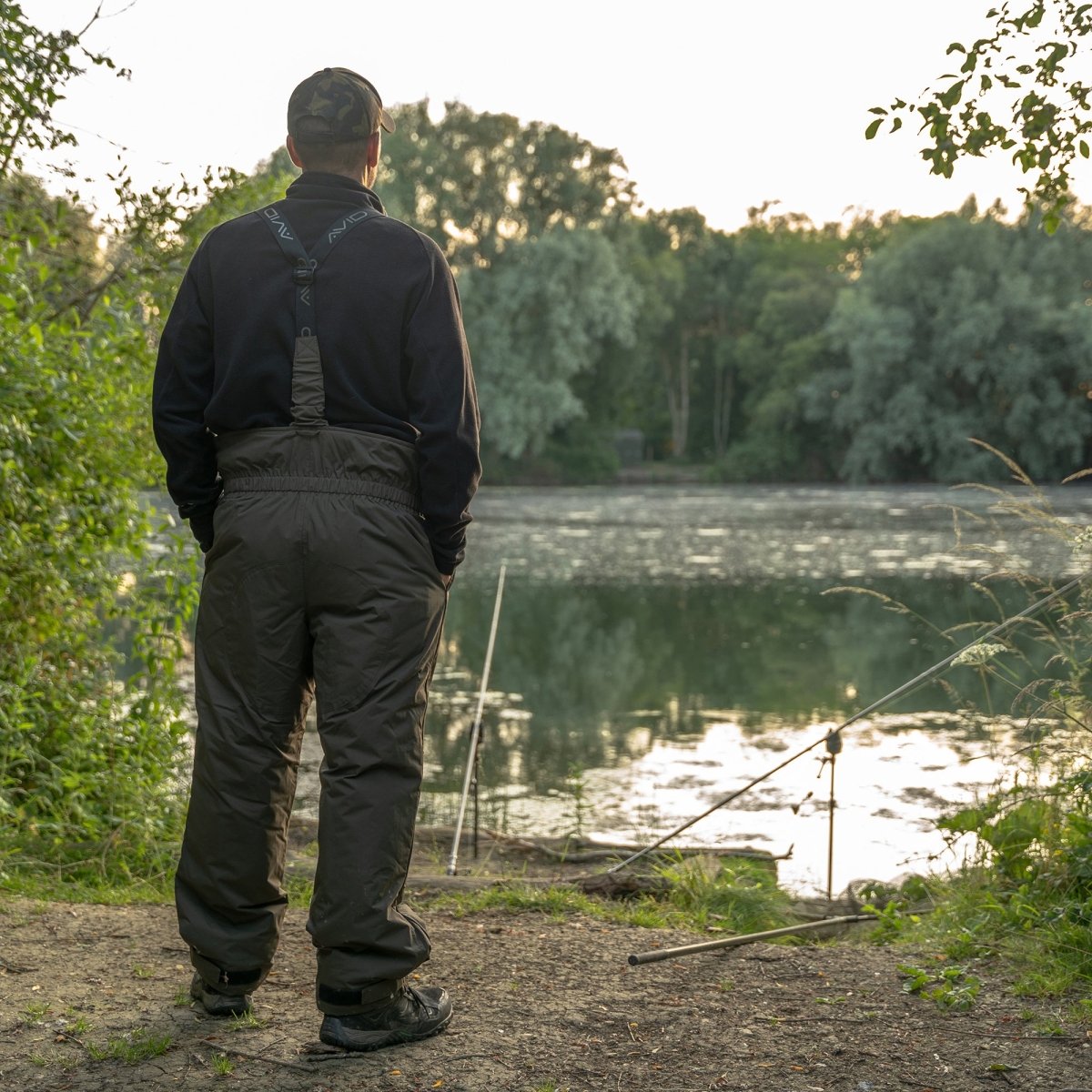Fato térmico impermeável da marca Avid Carp modelo Arctic-Series 2 peças com design em Cor verde militarideal para as suas sessões de pesca com carpas.
