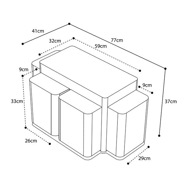 - 6 reforços internos rígidos mantêm a superfície de trabalho/mesa no sítio e mantêm a forma