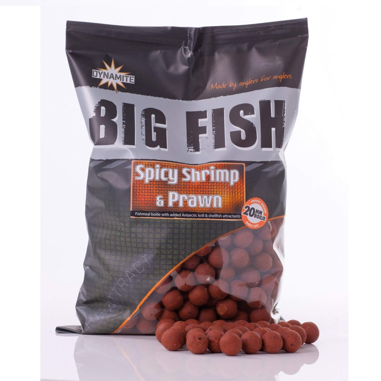Bolsa de valores boilies de 1 quilograma da marca Dynamite Baits de 20 milímetros da gama Big Fish sabor Picante Shrimp Prawnespecial para a pesca da carpa.