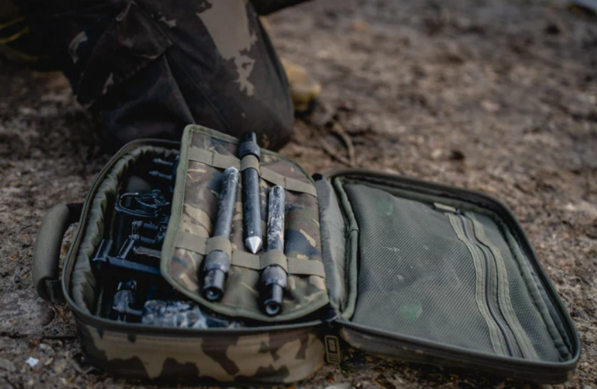 Mochila para guardar Buzz Bar da marca Nash em Cor camuflagem tamanho grande de 48 cm, especialmente para a pesca com carpas.