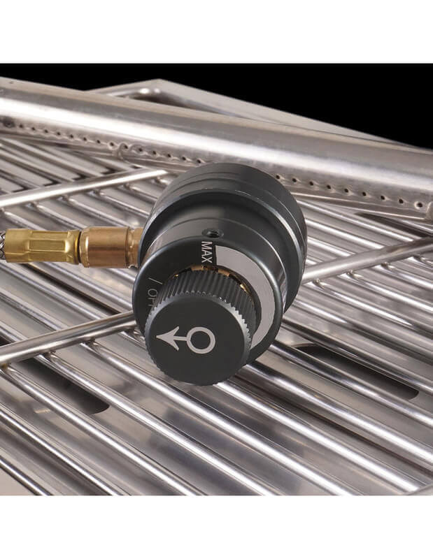 - Possui um dispositivo de ignição de comprimento total com calor ajustável e ignição piezoeléctrica