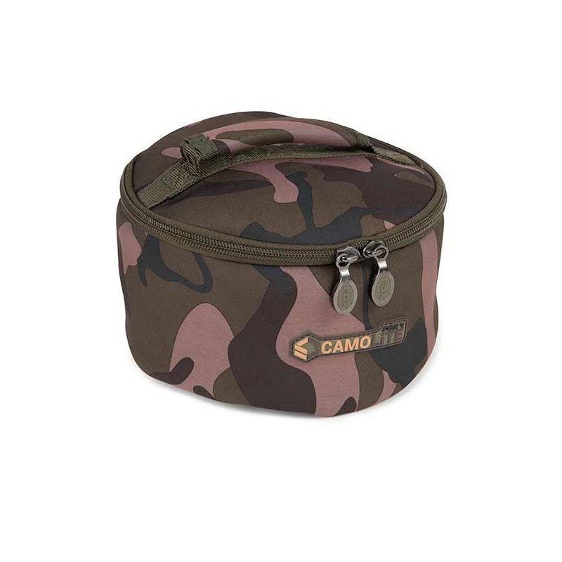 Saco de neoprene com a marca Fox, modelo Camolite, em Cor Camuflado, perfeito para os seus acessórios de cozinha de pesca de carpas.