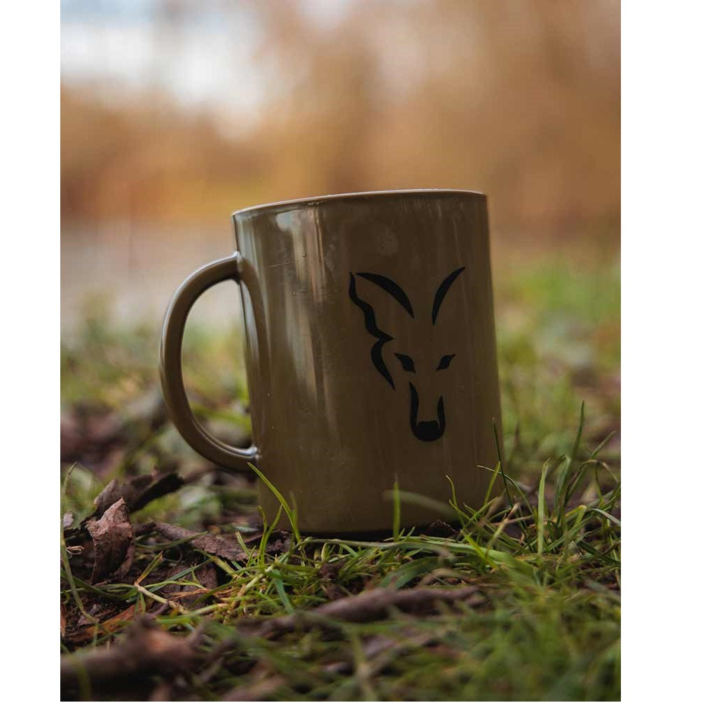 Caneca com marca Fox com desenho a cores verde e logótipo a cores preto, especial para a pesca com carpas.