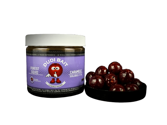 Boilies solúvel selecionado para o posicionamento da marca Dudi Bait de 16 milímetros alcance Glugged sabor floresta de lulasespecial para a pesca da carpa.