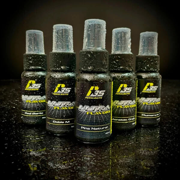 Aroma em formato spray da marca Peralbaits da marca Ultra Flavor aromatizado com Mandarina Scopex, especial para a pesca da carpa.