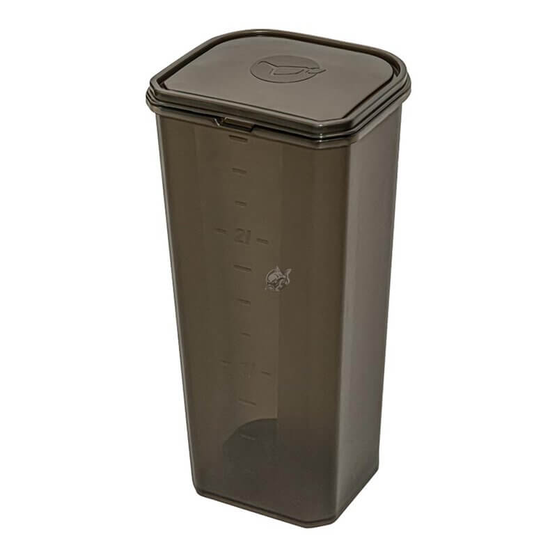 Contentor alongado com uma capacidade de 3 litros de capacidade da marca Korda modelo De reserva na cor verde camuflado, especialmente para a pesca com carpas.