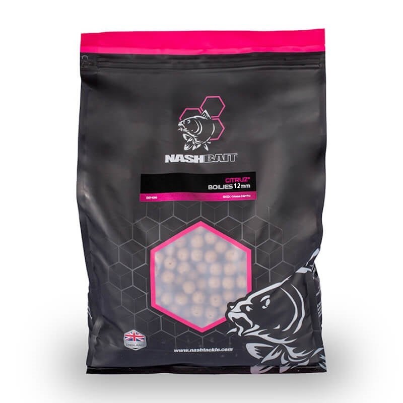 Saco de 1 quilo de boilies da marca Nash sabor Citruz em Cor natural 12 milímetros sob a forma de isco alimentar para as quatro estações do ano, nomeadamente para a pesca do caranguejo.