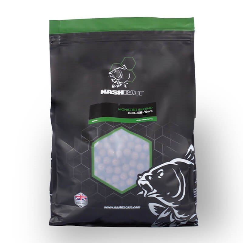 Bolsa de valores boilies da marca Nash de marca de 20 milímetros topo da gama Monster Shrimp. Especialmente para a pesca com carpas.