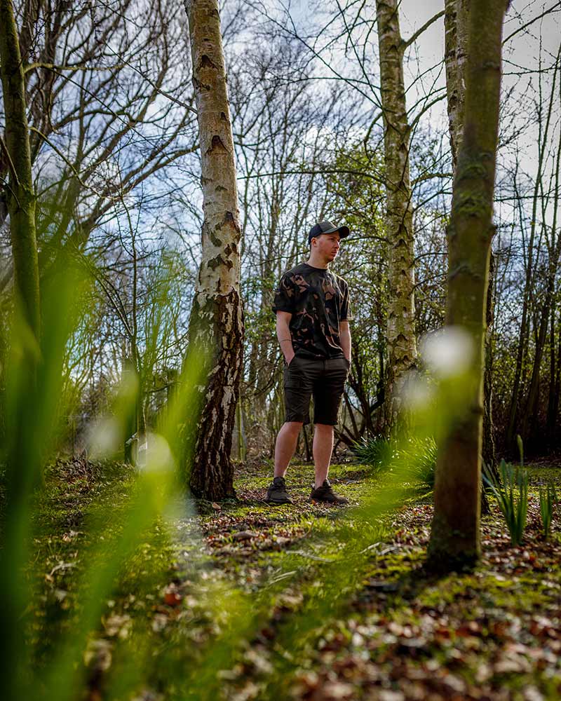 Calções de marca Fox modelo LW na cor caqui disponíveis em diferentes tamanhos, especialmente para a pesca com carpas.