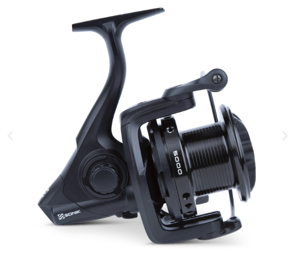 Carreto da marca Sonik modelo Xtractor+ 5000 com um acabamento em Cor preto, especialmente para a pesca com carpas.