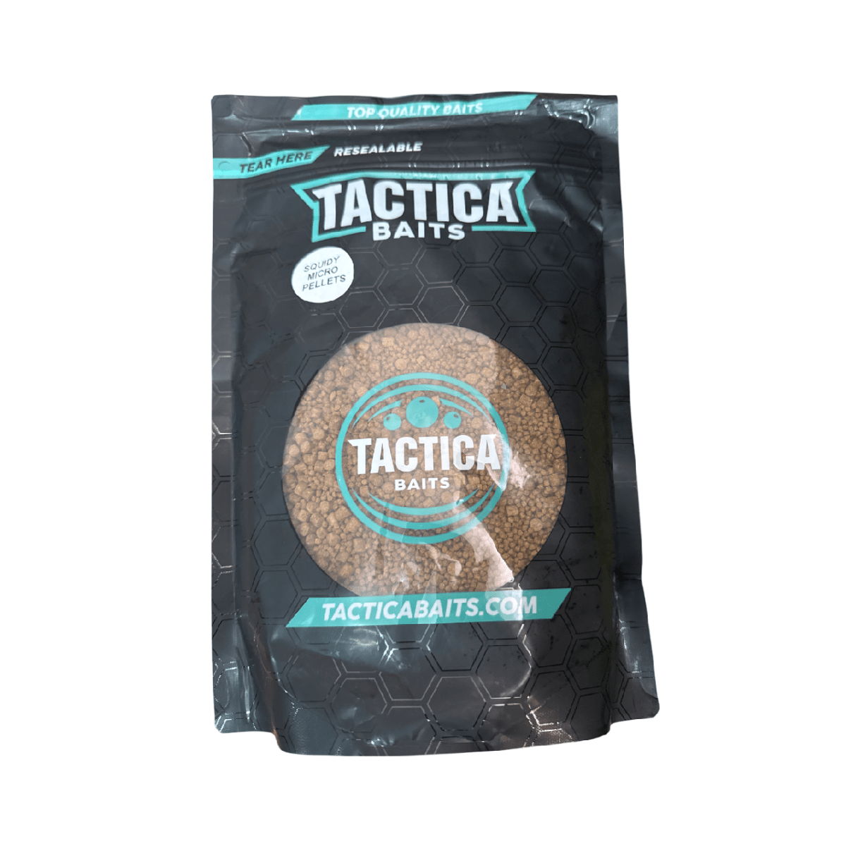 Mistura de micropellets da marca Tactica Baits, perfeito para preparar a sua zona de isco para a pesca do caranguejo.