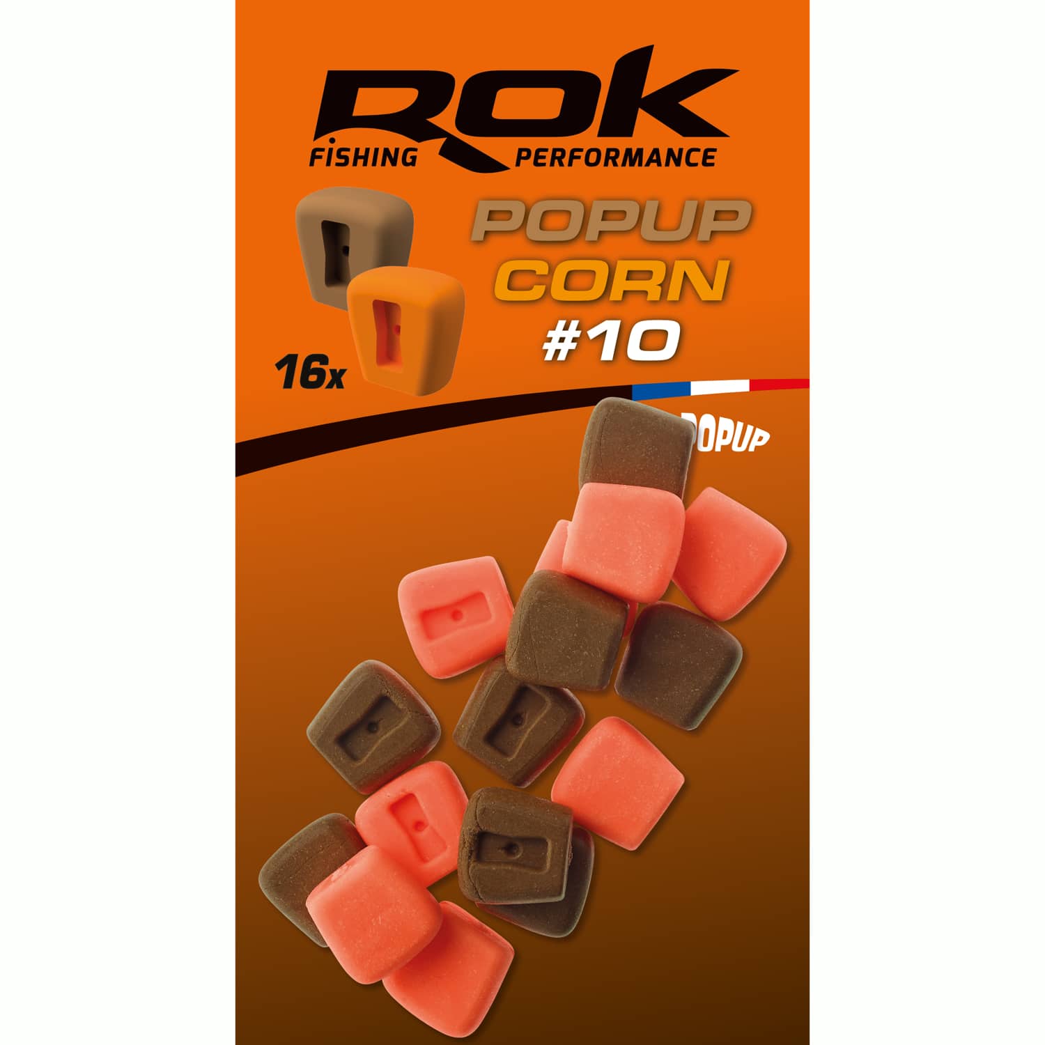 Milho Pop ups milho de marca artificial Rok Fishing de tamanho 10 na cor laranja e castanhoespecial para a pesca com carpas.