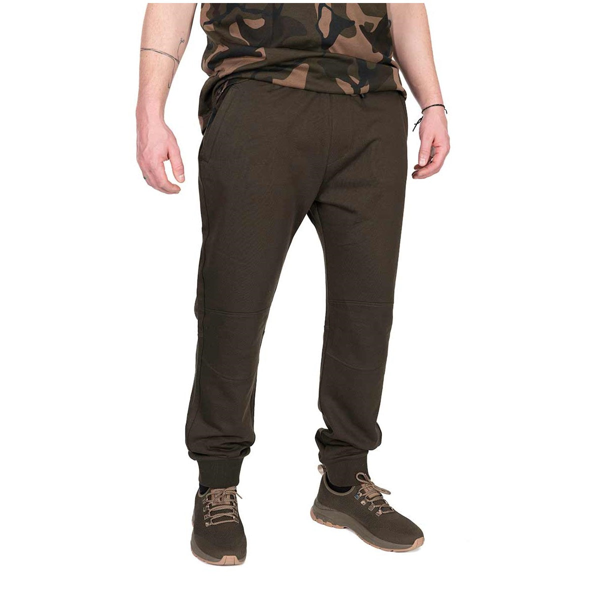 Calças de marca Fox modelo LW na cor caqui disponíveis em diferentes tamanhos, especialmente para a pesca com carpas.