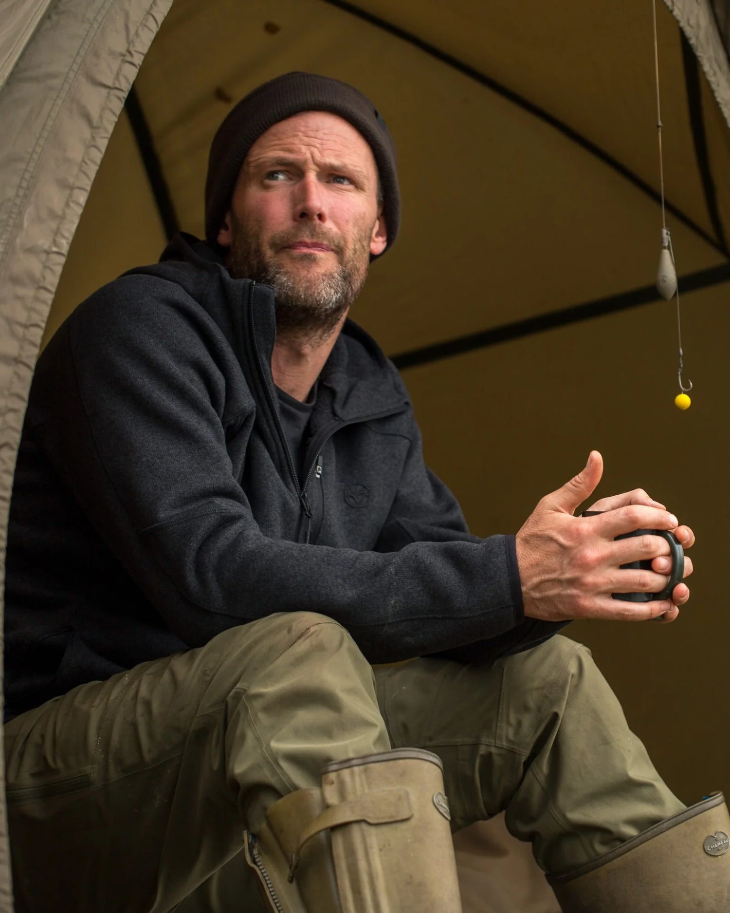 Casaco de lã da marca Korda modelo Kore casaco de lã com Cor pretoespecialmente para a pesca com carpas.