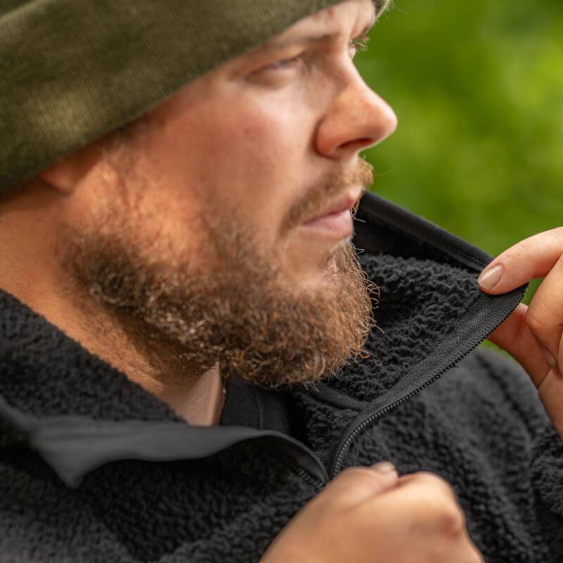 Camisola com Tampa da marca Avid Carp modelo Pulôver Sherpa com design colorido pretoespecial para a pesca com carpas.