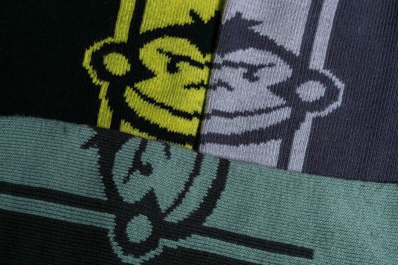 Pack de três meias da marca Ridge Monkey modelo Apearel Crew no tamanho 43-46 na cor verde, amarelo e cinzento, especialmente para a pesca com carpas.