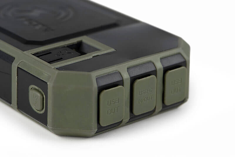 Bateria da marca Fox modelo Halo 27k a cores verde e preto com 26800mAh de capacidade, especialmente para a pesca de carpas. Ideal para carregar todo o tipo de telemóveis.
