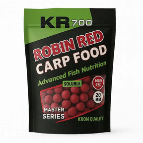bolsa boilies marca solúvel Krom Quality alcance KR700, sabor Robin Red, de 20 milímetros, especialmente para a pesca da carpa.