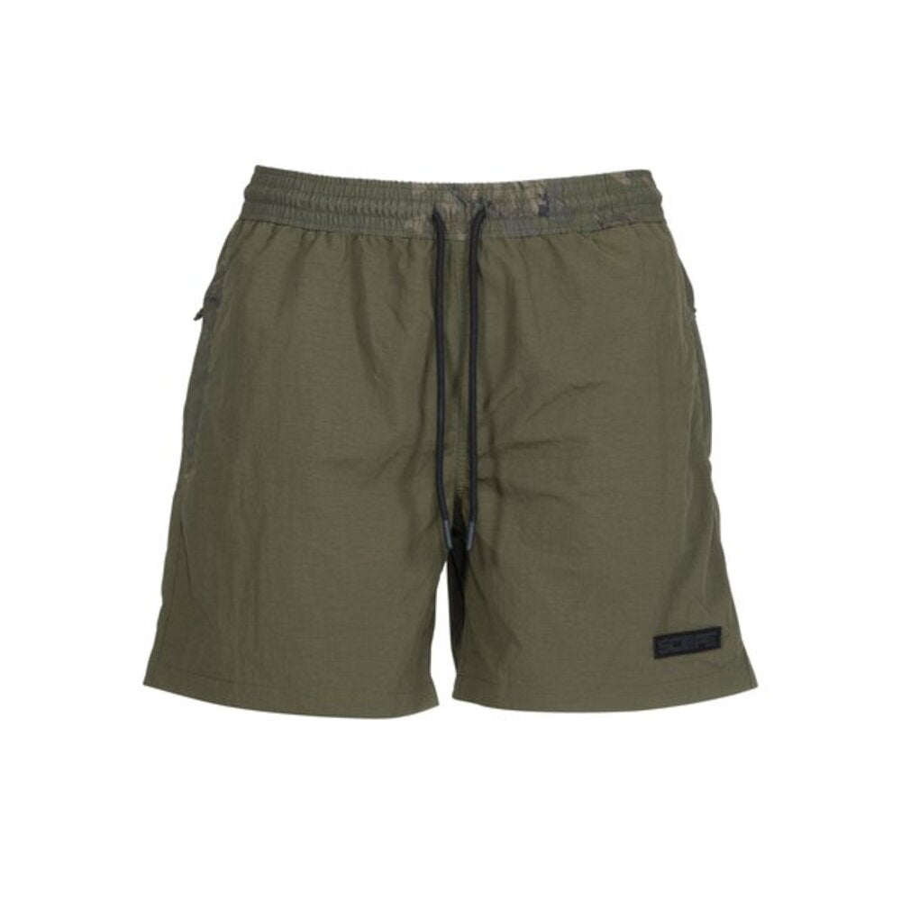 Marca de fatos de banho Nash modelo Scope Calção Ops em cores caqui/camuflagemespecialmente para a pesca com carpas.