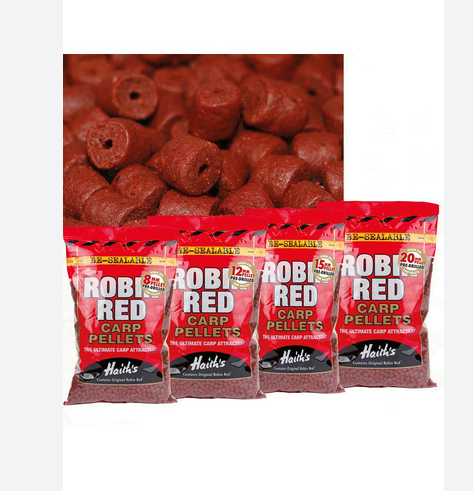 Pellets da marca Dynamite Baits de 6 milímetros aromatizado com Source na cor vermelhaespecial para a pesca com carpas.