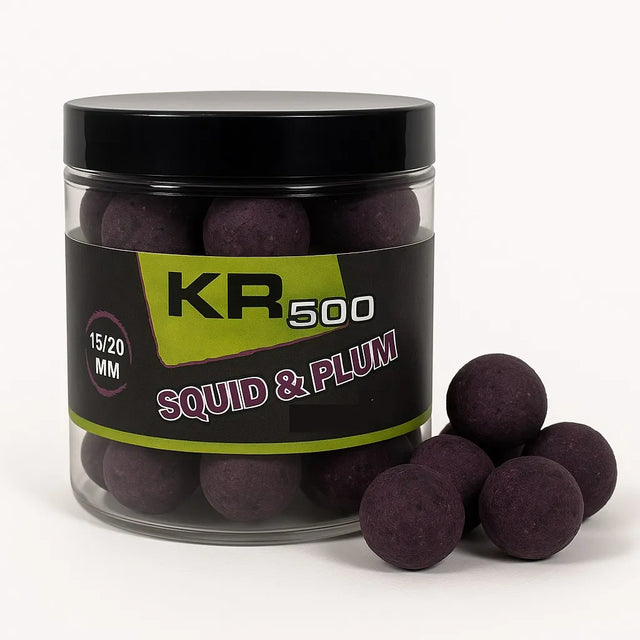 Boilies marca equilibrada Krom Quality sabor Squid & Plum 15 e 20 mm, especialmente para a pesca da carpa.